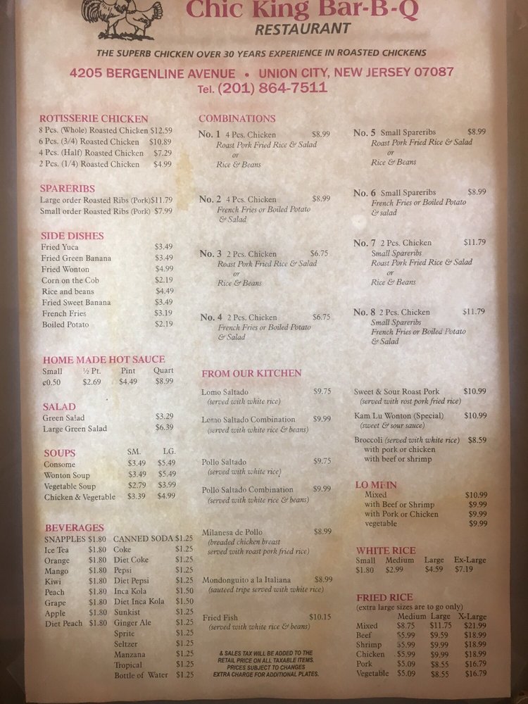 Chic King BBQ Restaurant in Union City offers a no-frills Peruvian dining experience with a focus on flavorful BBQ dishes. Their menu includes favorites like Lomo Saltado and Pollo a la Brasa, with customers raving about the tender chicken, crunchy yucca fries, and top-notch ribs. The Aji amarillo sauce is a standout, elevating each dish with its unique flavor profile. Chic King is praised for its reasonable portion sizes, good prices, and welcoming casual atmosphere. The restaurant now accepts credit cards, making it even more convenient for diners. Overall, Chic King BBQ Restaurant is a go-to spot for delicious Peruvian BBQ with a touch of home-cooked comfort.